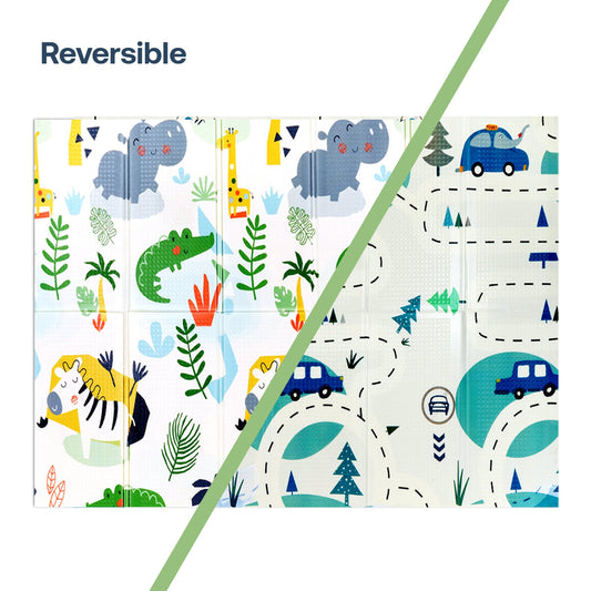 Alfombra Antigolpes Infantil Plegable con Bolso - 180x120 - Auto y Jungla