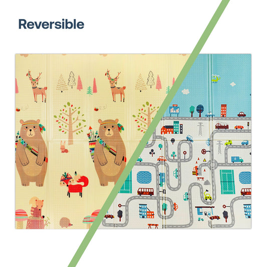 Alfombra Antigolpes Infantil Plegable con Bolso - 180x200 - Oso y Ciudad