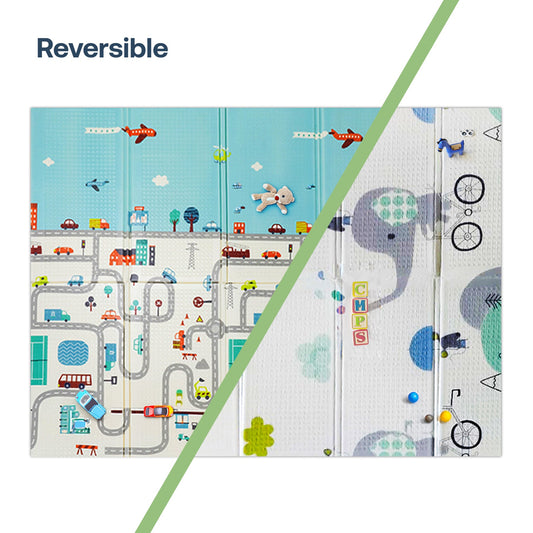 Alfombra Antigolpes Infantil Plegable con Bolso - 180x120 - Ciudad y Elefante