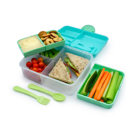 Lonchera Bento Box con Cubiertos - Celeste, Lima y Verde