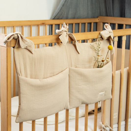 Organizador de Cuna de Muselina de Algodón Orgánico - Beige