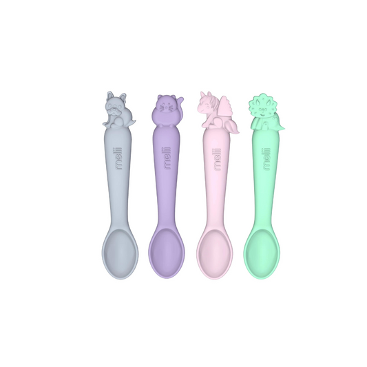 Set de Cucharas de Silicona - 4 unidades - Bulldog, Gato, Dino y Unicornio