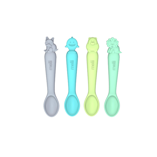 Set de Cucharas de Silicona - 4 unidades - Tiburon, Dino, Bulldog y Oso