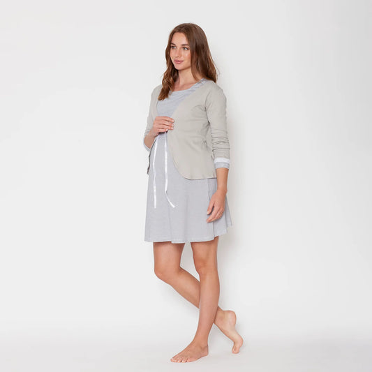 Pijama Maternal para Embarazo y Lactancia de Algodón Pima - Ramitas Grices