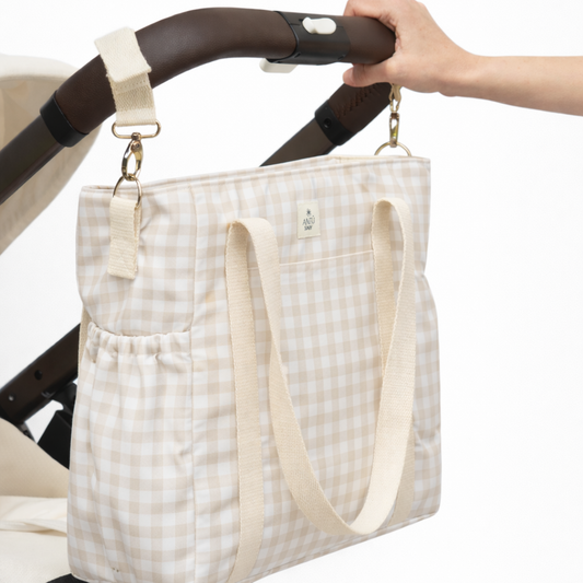 Bolso Maternal Quilt - Beige con Flores Blancas