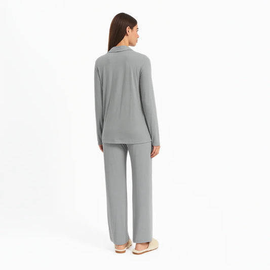 Pijama Maternal Camisero Manga Larga - Gris