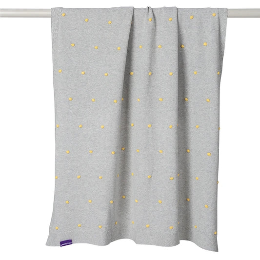 Organic Cotton Pom Pom Blanket - Grey/Yellow