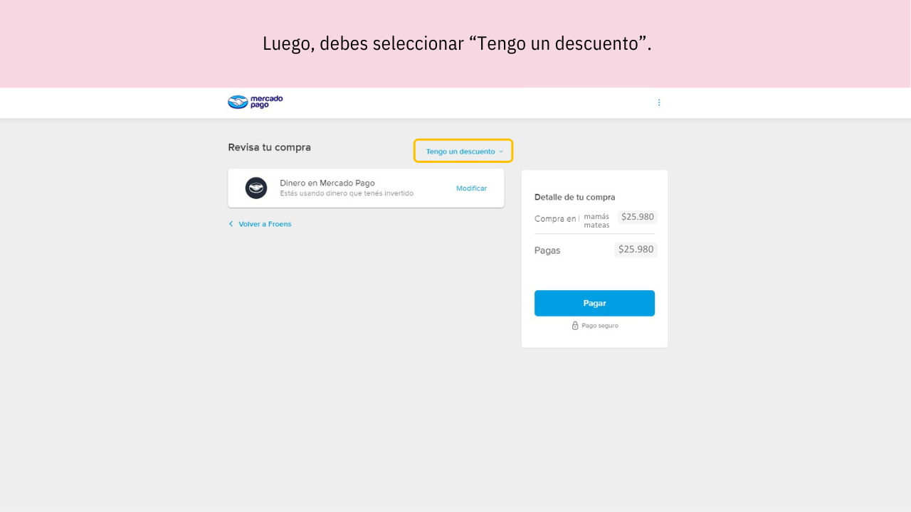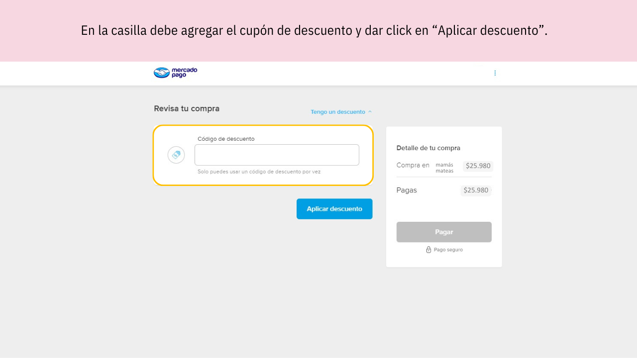 Very important: This code is entered in Mercado Pago, NOT in mamasmateas.com