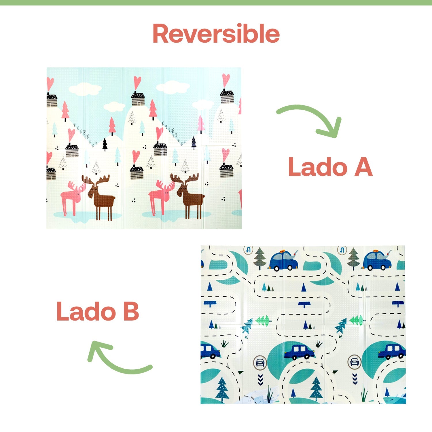 Alfombra Antigolpes Infantil Plegable con Bolso - 180x200 - Auto y Montaña