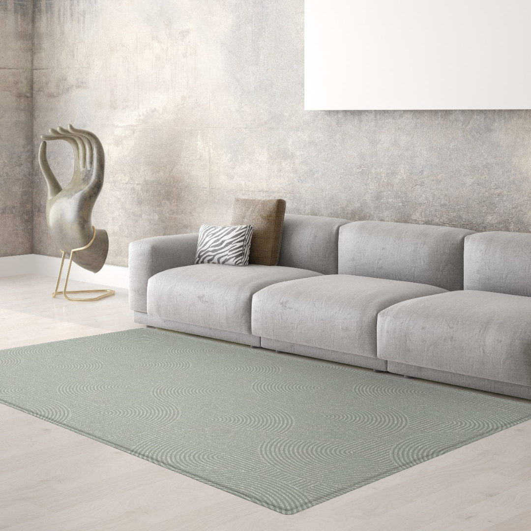 - Lado B: Diseño contemporáneo en distintas tonalidades verdes. Pensado para espacios grandes, con textura que imita una alfombra común y corriente.