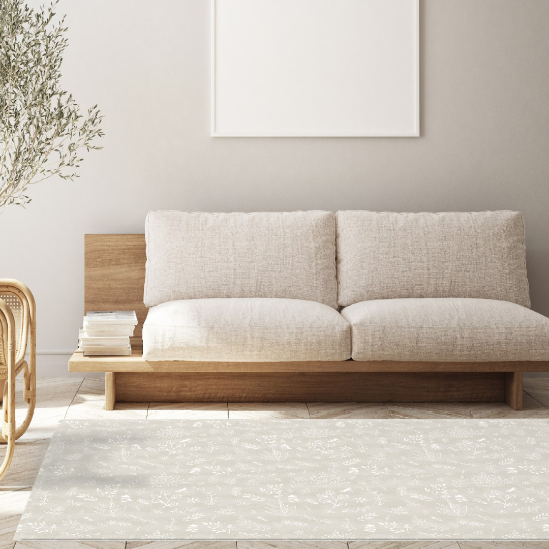 - Lado A: Diseño botánico inspirado en la naturaleza en color blanco. De fondo, un tono beige clarito fácil de combinar con cualquier decoración y espacio.