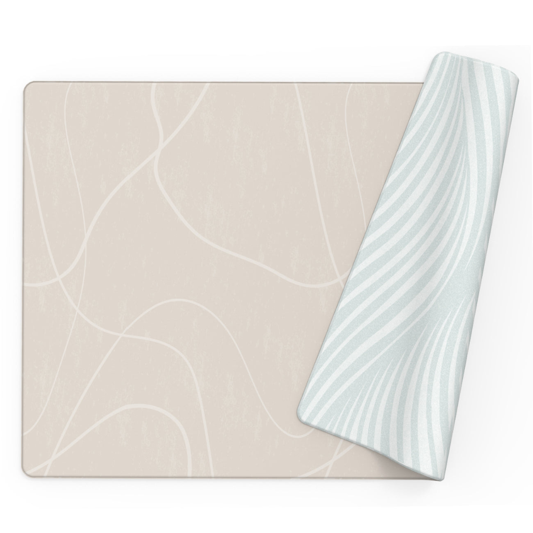 - Lado B: Inspirado en las playas y en la orilla del mar. Fondo color arena con detalles que dan una textura única, y líneas que dan movimiento en tonos crema.