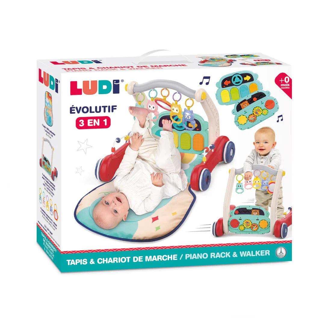 La Alfombra de Juegos Piano y Correpasillos de Ludi está diseñada para acompañar a tu guagua desde sus primeros descubrimientos hasta sus primeros pasos. Es un 2 en 1 que combina una alfombra sensorial con un andador evolutivo, estimulando el desarrollo motor, auditivo y visual de forma segura y entretenida.