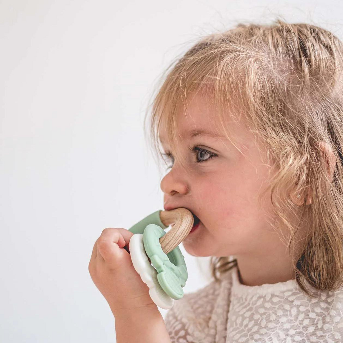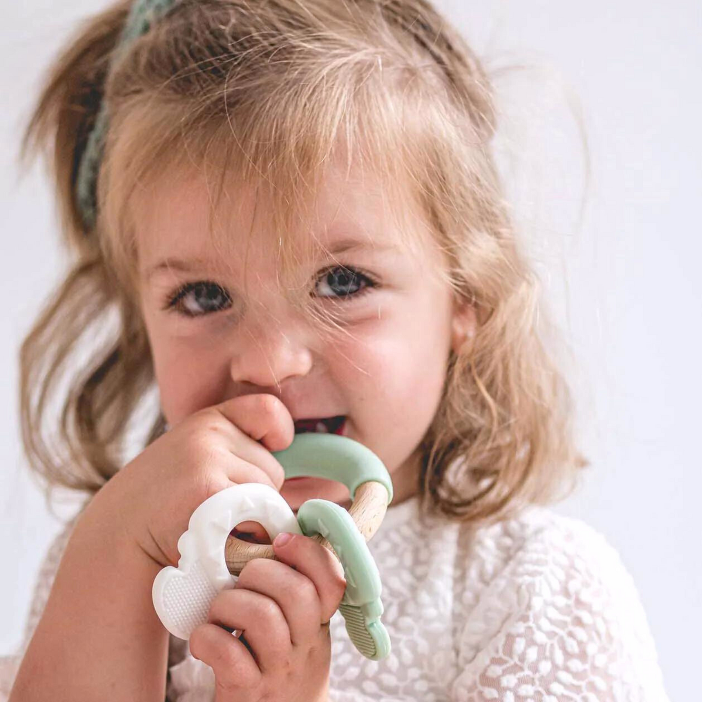 - Texturas variadas: Los puntitos y triángulos proporcionan un suave masaje en las encías durante la dentición.