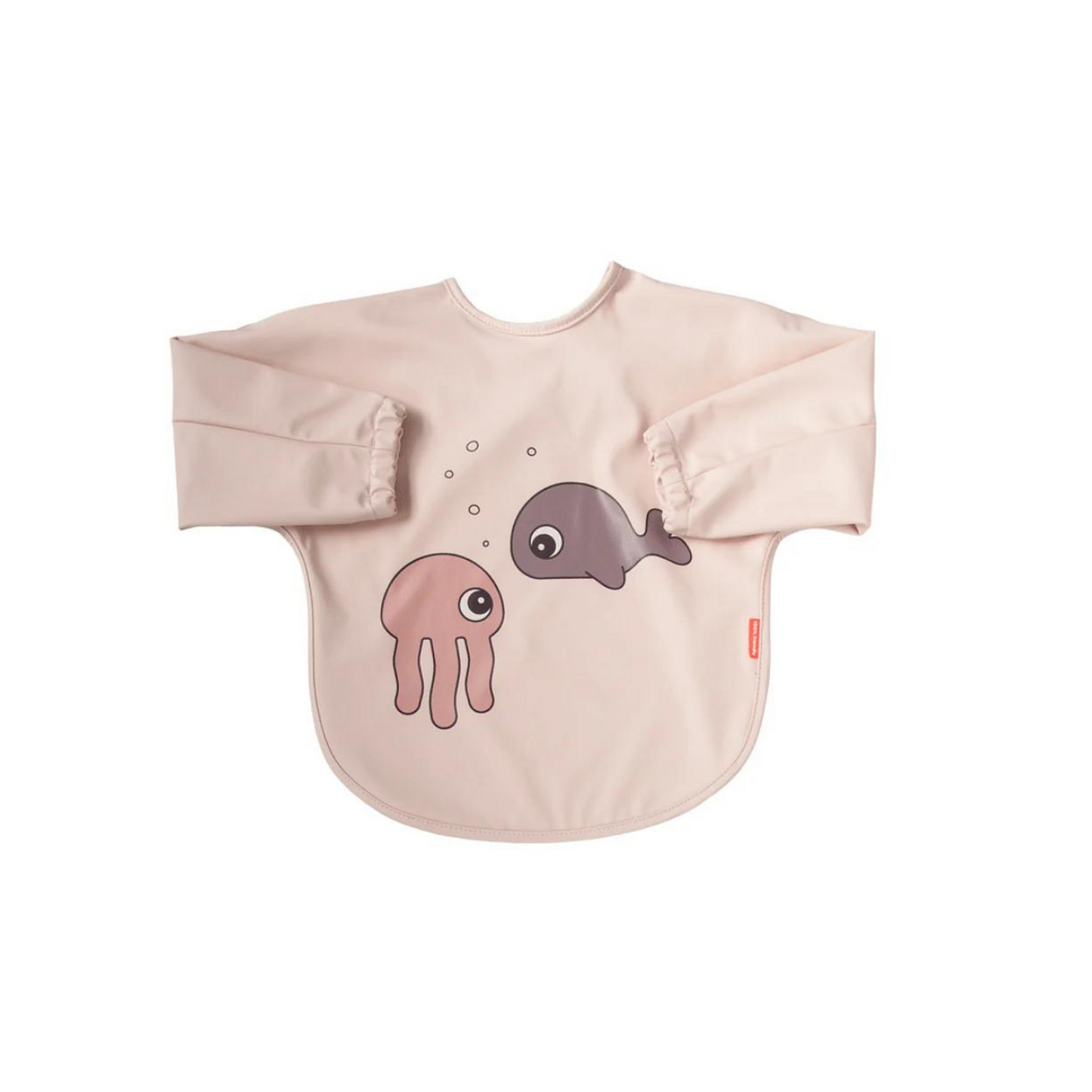 The Sea Friends bib is waterproof with convenient elastic sleeves and velcro closure. It is easy to wipe clean or wash in the washing machine. With this bib, you are ready for a convenient and less messy feeding trip.