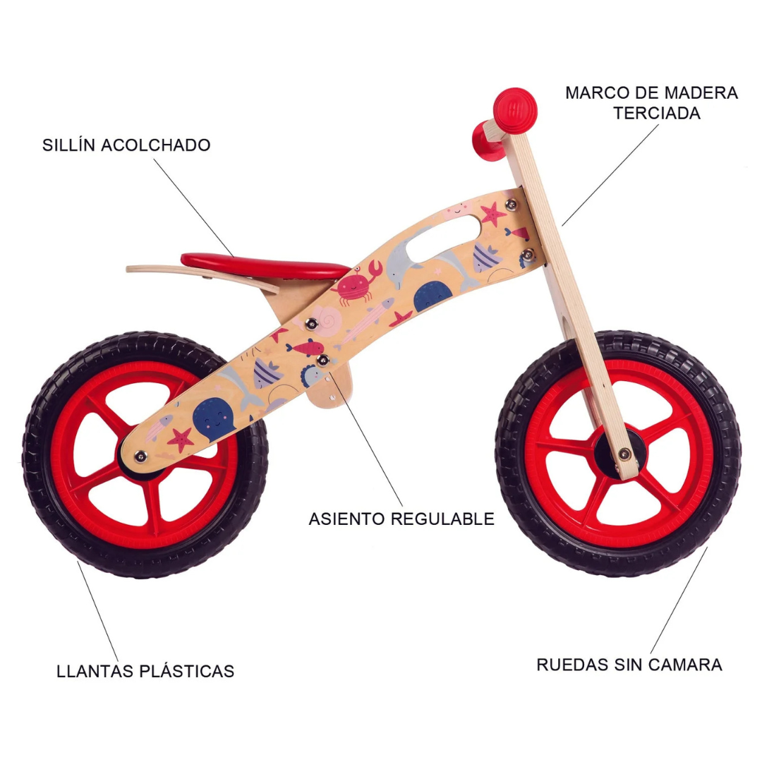 Balance Bike - Bicicleta de Equilibrio - Madera - Océano Rojo