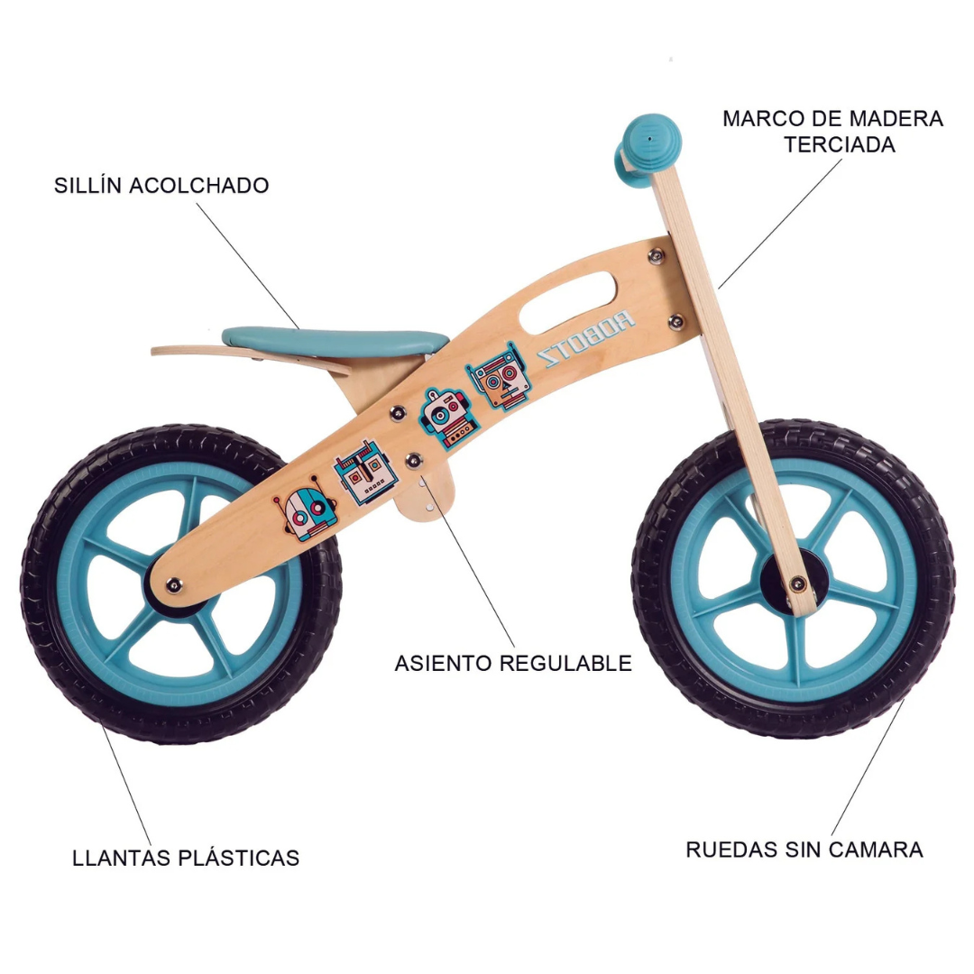 Balance Bike - Bicicleta de Equilibrio - Madera - Robot Celeste