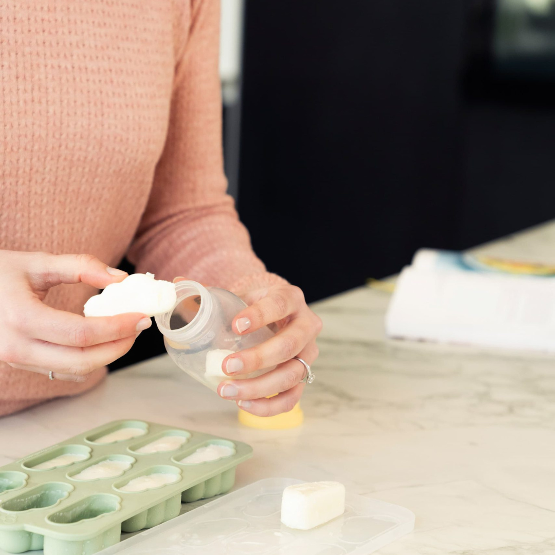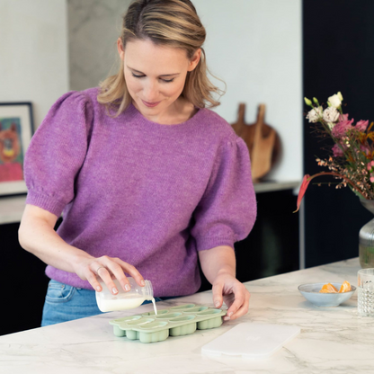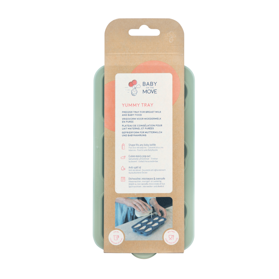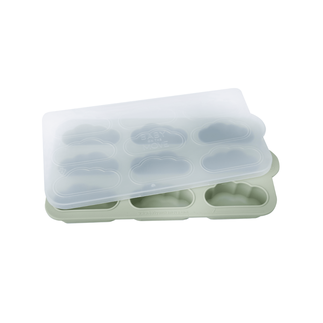 La Bandeja con Moldes Baby on the Move es una bandeja versátil, reutilizable y segura, ideal para congelar leche materna, papillas caseras o snacks creativos. También puedes usarla para hornear deliciosos quequitos en forma de nube.