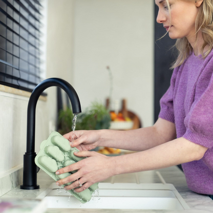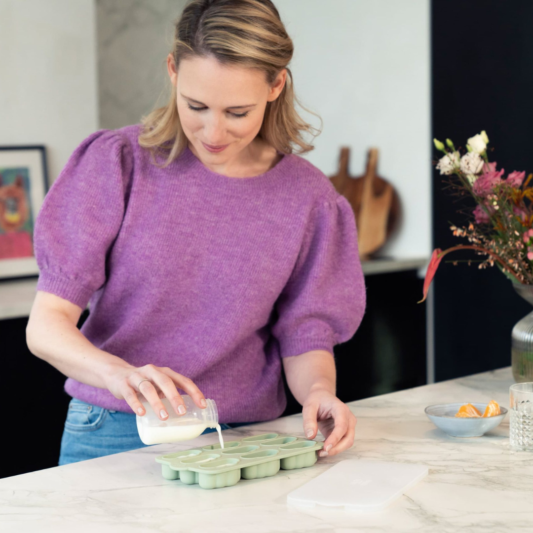 Su tapa se ajusta perfectamente a cada cavidad para evitar derrames y permite apilar varias bandejas sin perder espacio en el congelador. Además, es escribible y lavable en lavavajillas, perfecta para un uso práctico y consciente.