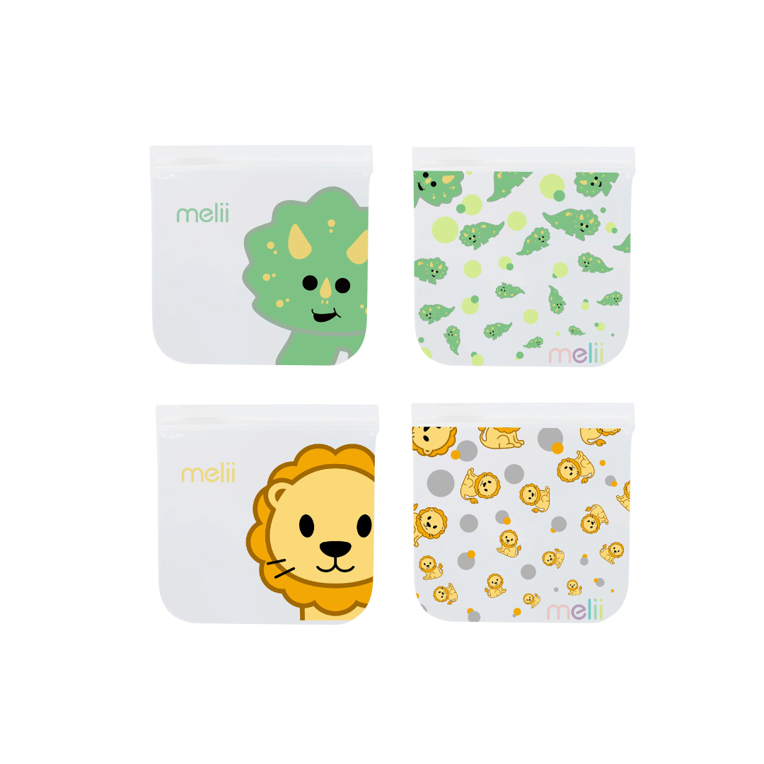 Reusable Snack Bags - 4 Pack - Dino and Lion