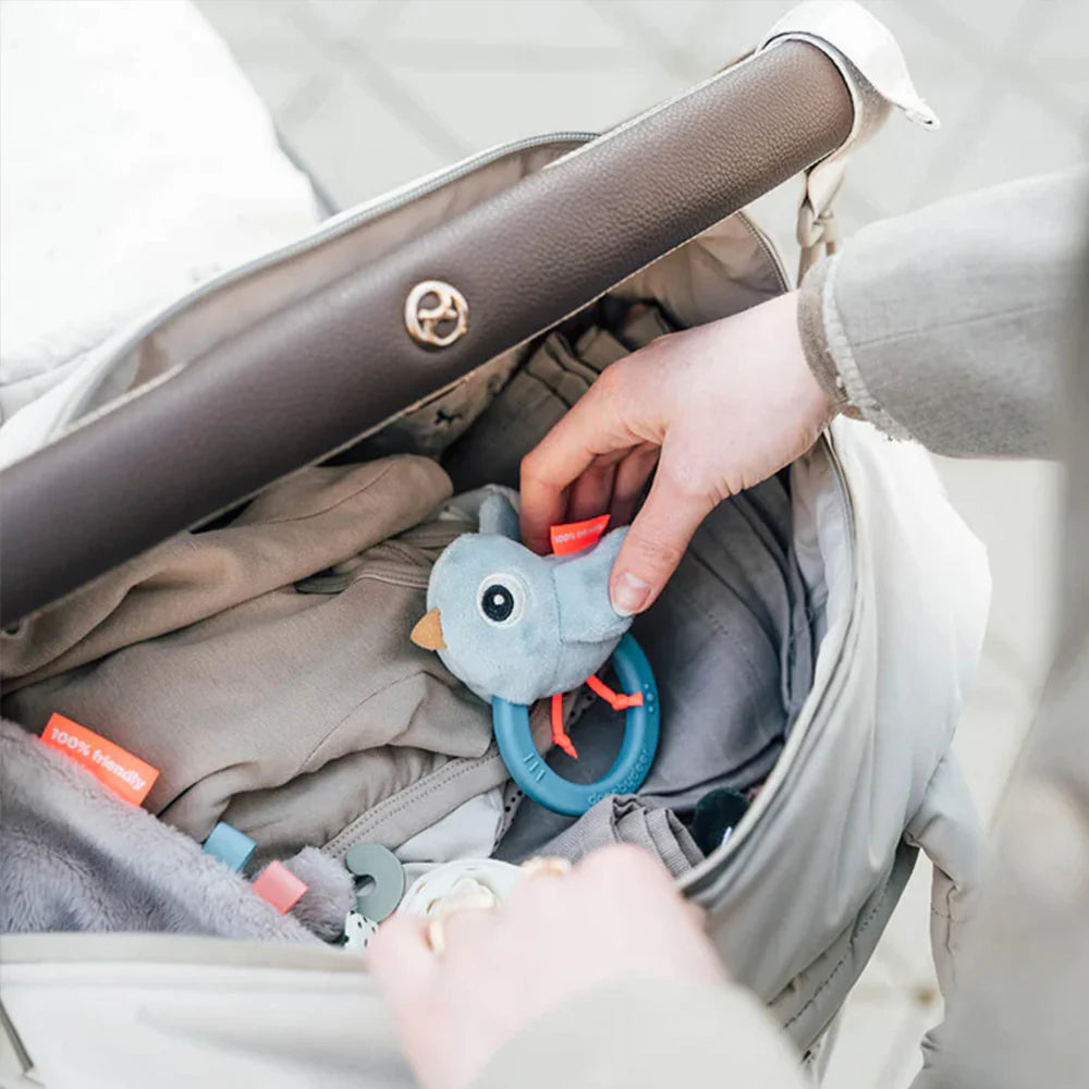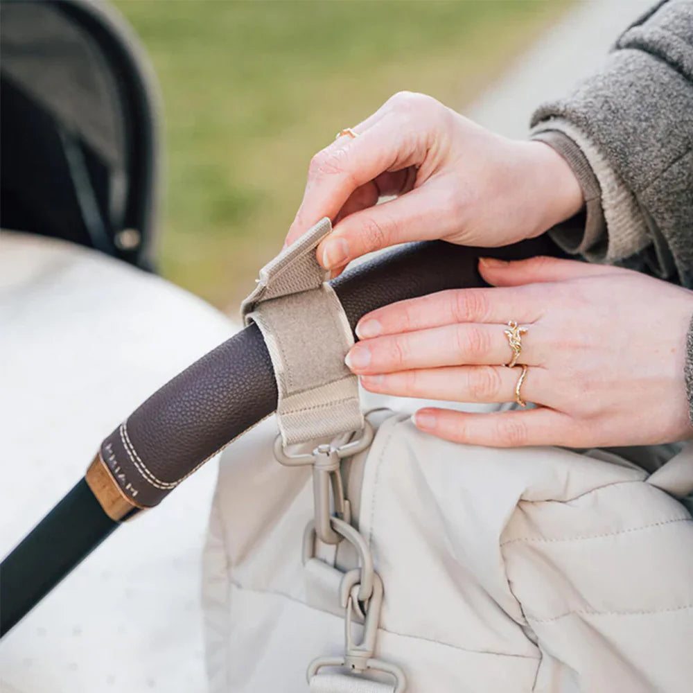 - Comodidad sobre la marcha: Correas exteriores para sujetar fácilmente al cochecito.