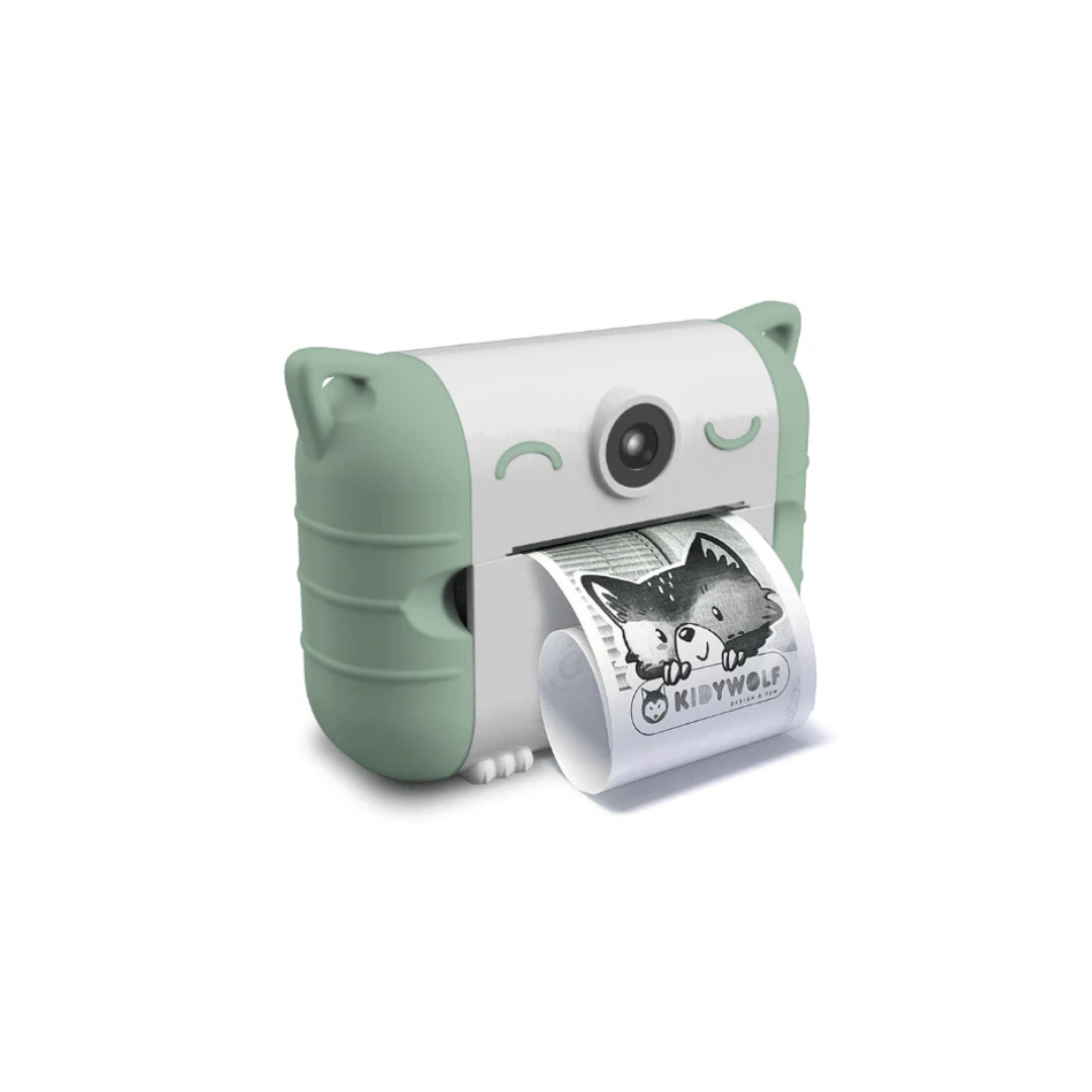 La Cámara Instantánea con Impresora de KIDYWOLF es perfecta para que los niños registren sus momentos favoritos e impriman fotos al instante sin necesidad de tinta gracias a su tecnología de impresión térmica. Viene con cámara frontal y trasera, 21 efectos de filtro, pantalla a color y muchos accesorios para personalizarla.