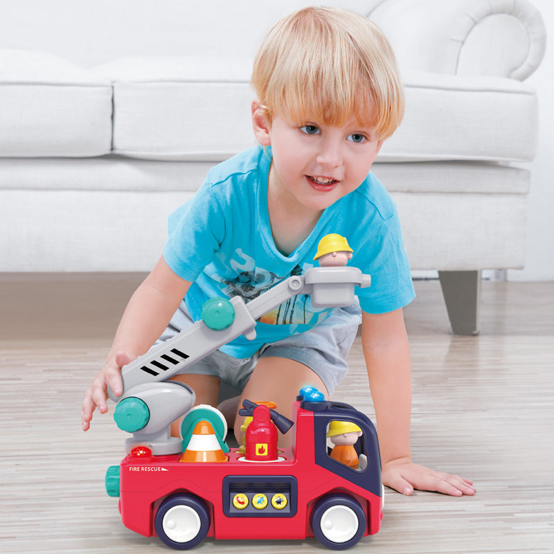 Call the fire department, put out the flames or sound the siren. When a song is playing, press the button to play the corresponding sound effect.