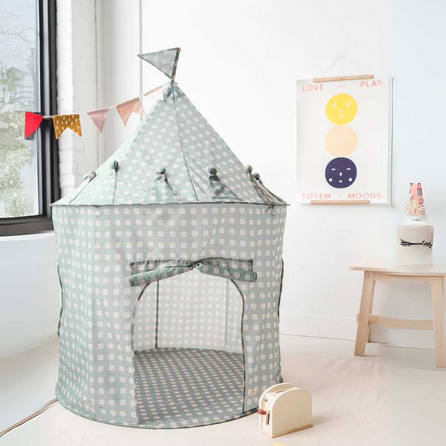 The tent is easily transportable between rooms and comes with a bag to store it flat when not in use. Not suitable for children under 3 years.