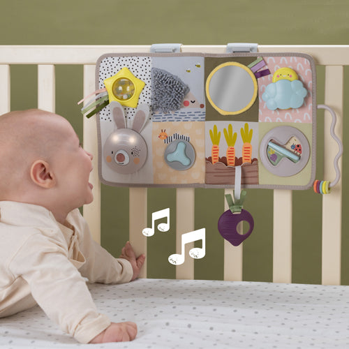 - Stage 1 (0m+): Back Lying: Hanging on the side of the crib, baby can explore and experience various features and play options while lying on their back or tummy.