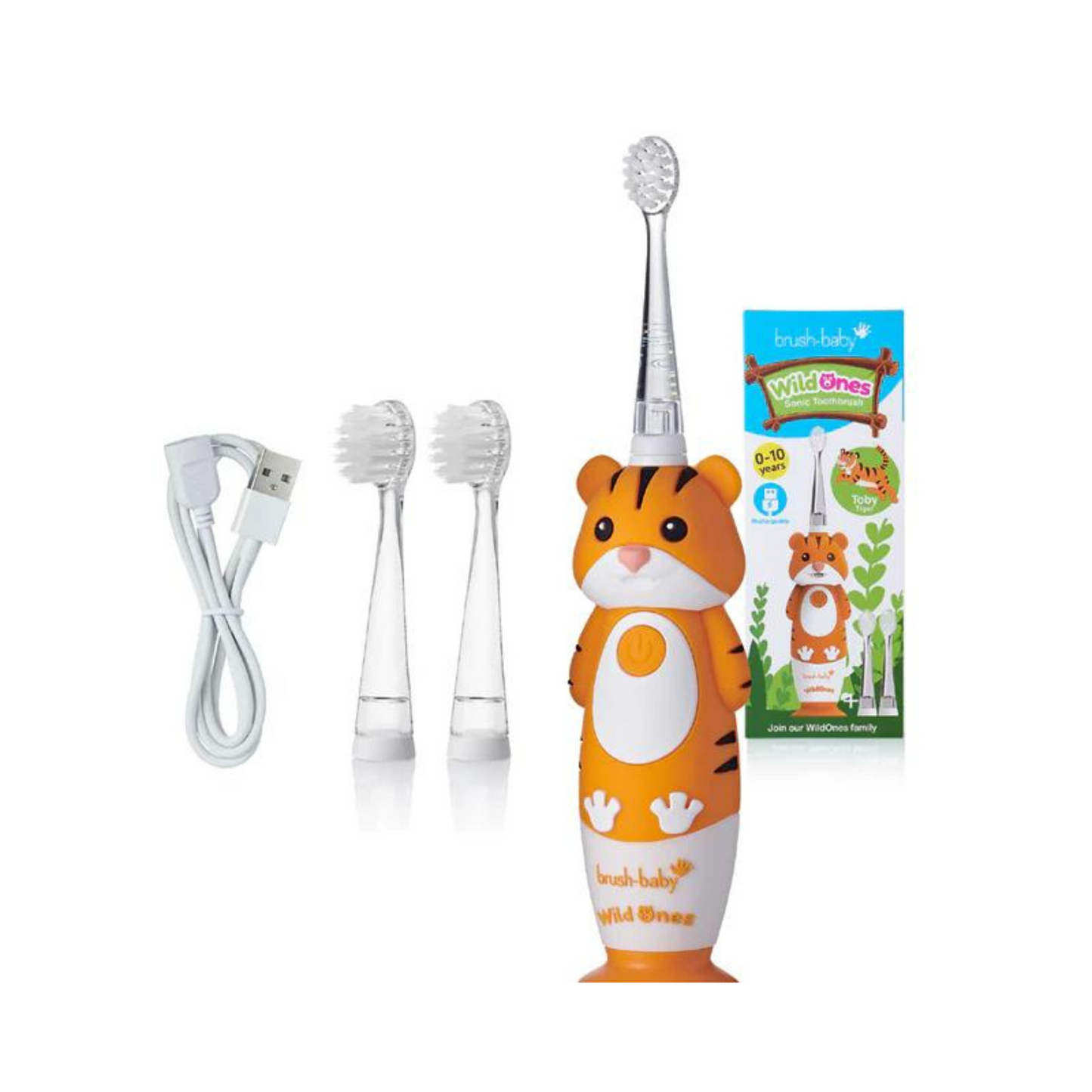 Cepillo de Dientes Eléctrico Recargable para Bebés y Niños WildOnes - Tigre | Brush Baby