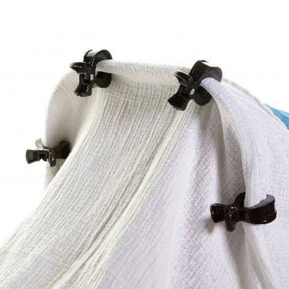 - Securely hang blankets or muslin cloths over the stroller to help protect your baby from the sun. These clips will help protect your child from sunlight while still ensuring proper airflow. Plus, it's great for helping baby maintain privacy when napping.