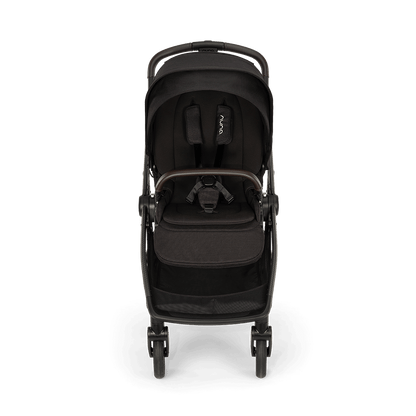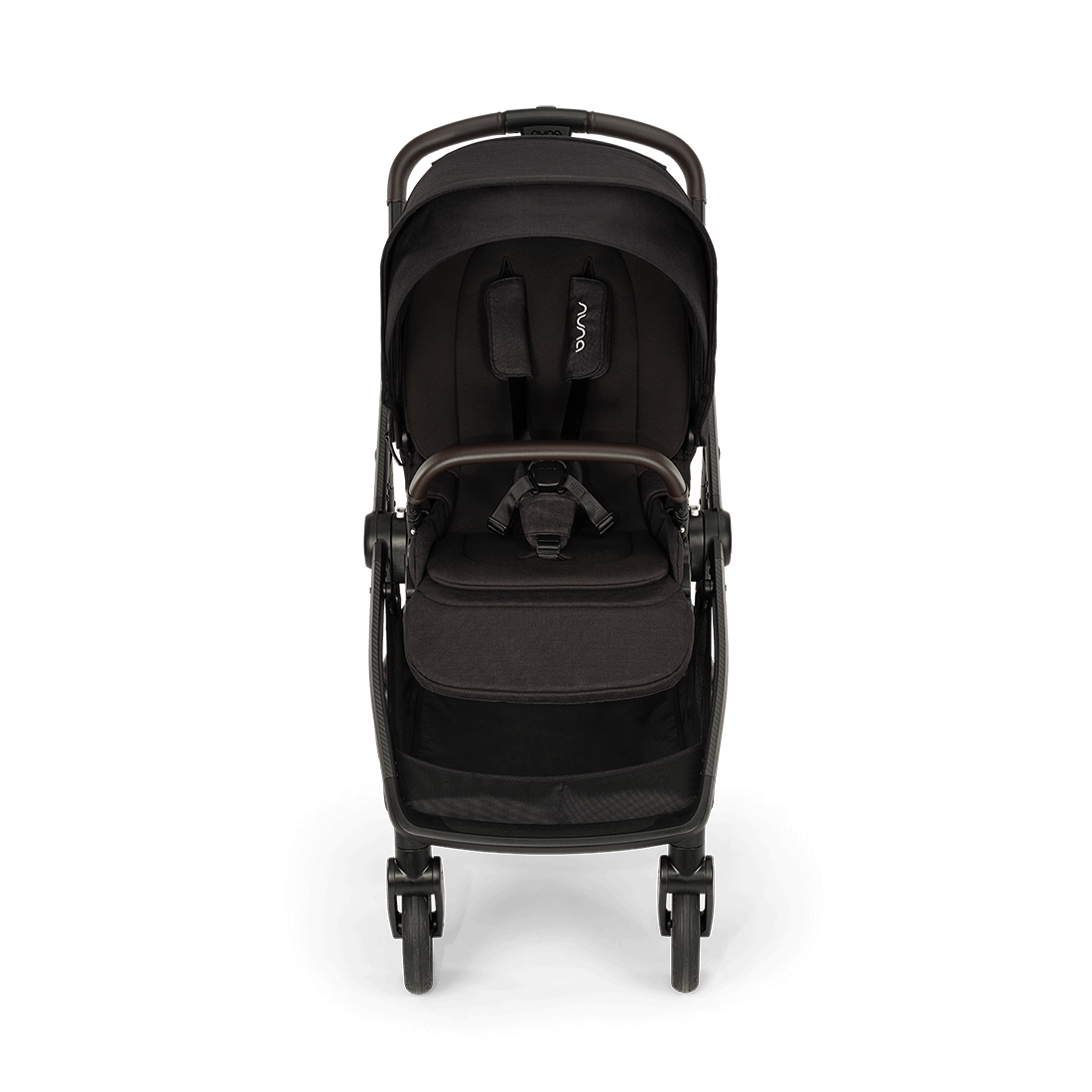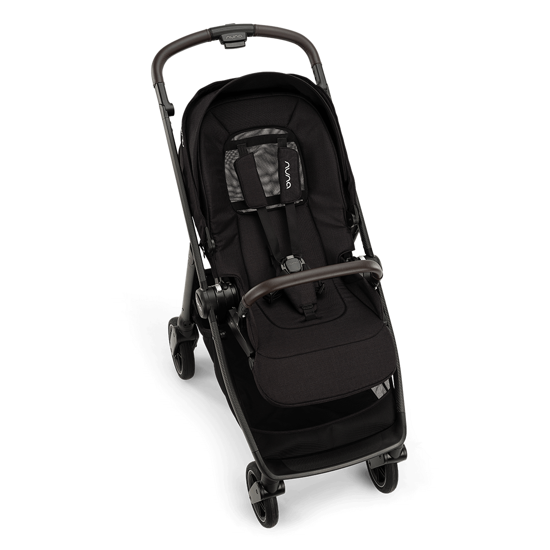 Arnés de 3 o 5 puntos ajustable, con un sistema de freno de un toque en las ruedas traseras para mayor seguridad.
