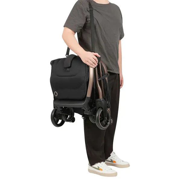 Con correa de transporte y un diseño liviano, este cochecito cabe en espacios reducidos, ideal para la vida en la ciudad y los viajes. -
