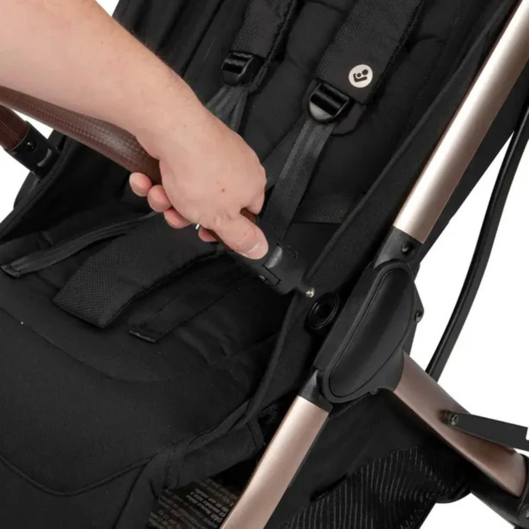 Con tecnología PureCosi™ libre de químicos y detalles de acabados tipo piel en mango y barra frontal, el Eva Essential ofrece un look sofisticado y seguro para tu bebé. - Estructura en tono champagne.