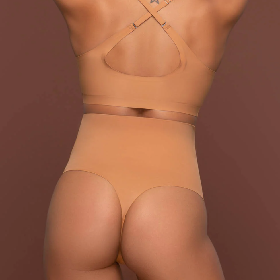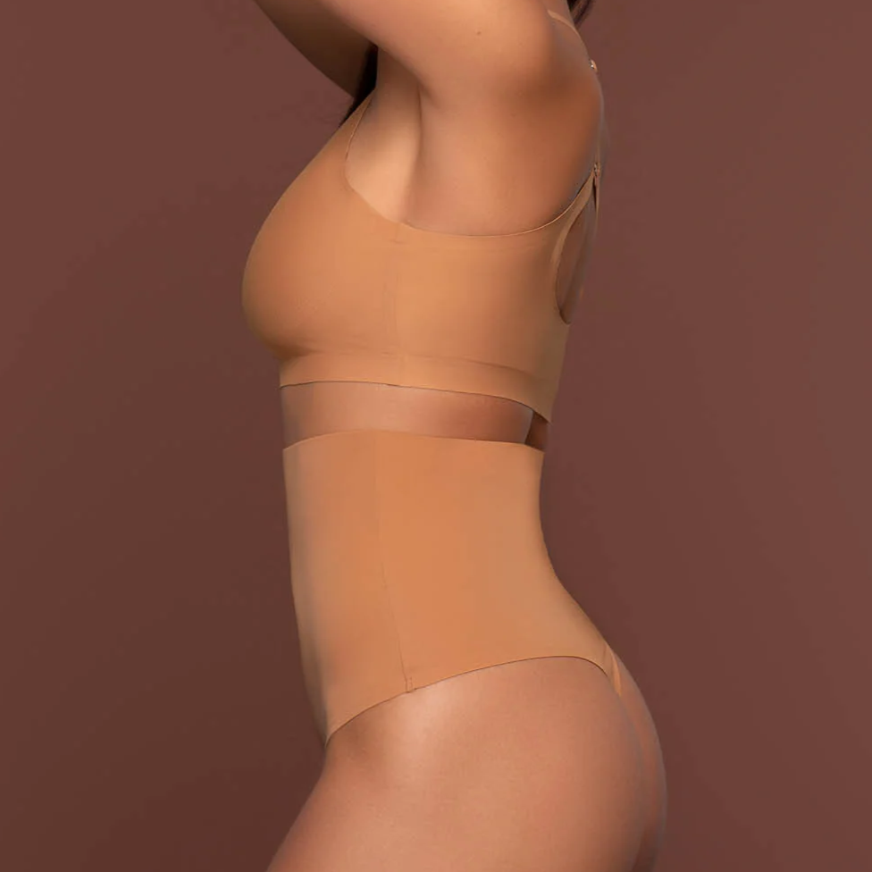 Bye Bra's new high-cut, shaping thong has a high-control shaping effect that sculpts your body in a comfortable way.