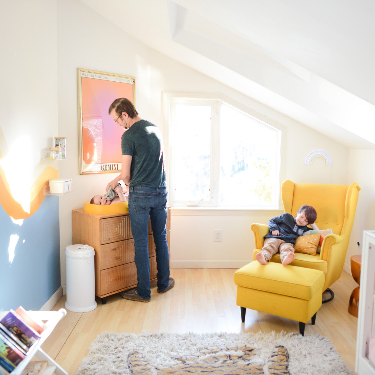 The Ubbi Diaper Pail is made of steel for maximum odor control. It is equipped with rubber seals that are strategically designed to lock in odors, as well as a sliding lid that minimizes air disruption, keeping odor inside the pail. The Ubbi Pail includes a childproof lock. All the style and none of the odor, a promising solution for the baby's room.