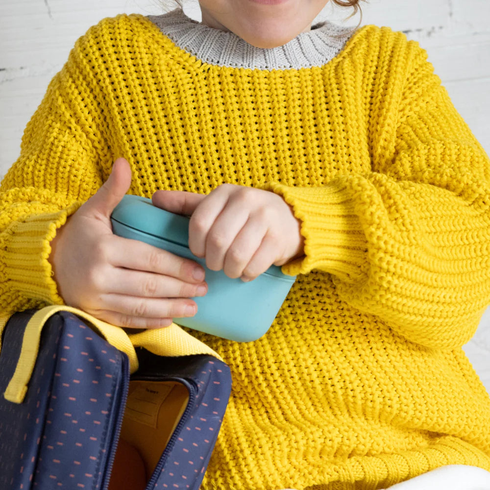 This 11oz Store & Go container is designed with a BPA-free bamboo fiber base, and a 100% leak-proof, food-safe silicone lid. It's perfect for baby food or toddler snacks. During use, the lid can be attached to the bottom of the container to prevent it from getting lost; this feature also serves as a non-slip base.