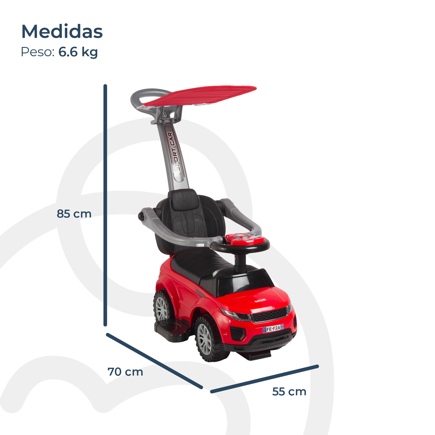 El corre pasillo Bebesit Push Car ofrece una experiencia de juego segura y entretenida para los más pequeños. Su diseño realista, acompañado de un toldo con protección UV y un manillar de empuje para los padres, permite paseos cómodos y controlados, ideal para acompañar a niños y niñas que comienzan a desplazarse con más autonomía.