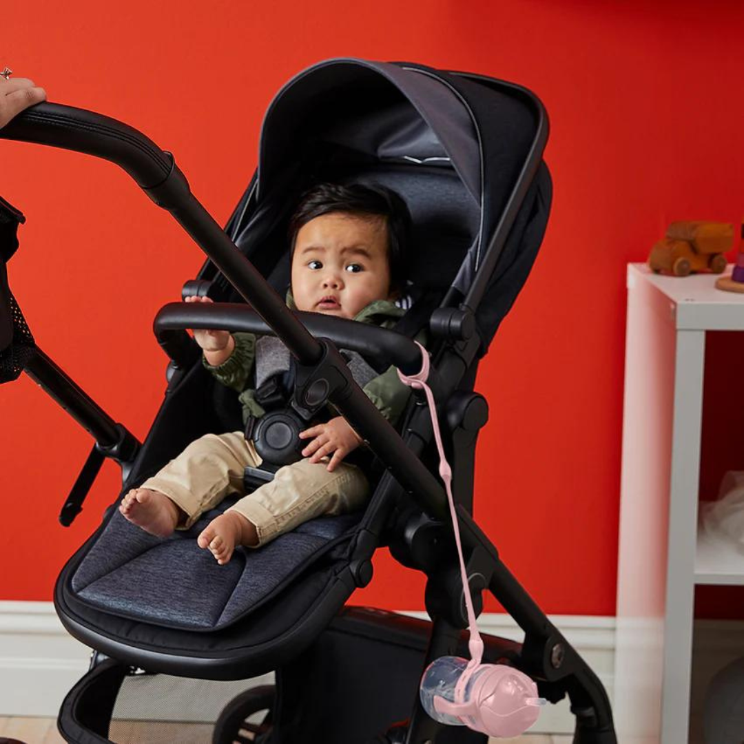 Say goodbye to lost cups at the grocery store and bottles that slip out of the car! The b.box Connect-a-Cup is a fully adjustable strap that secures sippy cups or bottles to the stroller, highchair or car seat, keeping them within reach of your baby. Designed with safety in mind, this strap features two safety release systems that allow it to disconnect if it is subject to excessive tension, always putting your child’s safety first.
