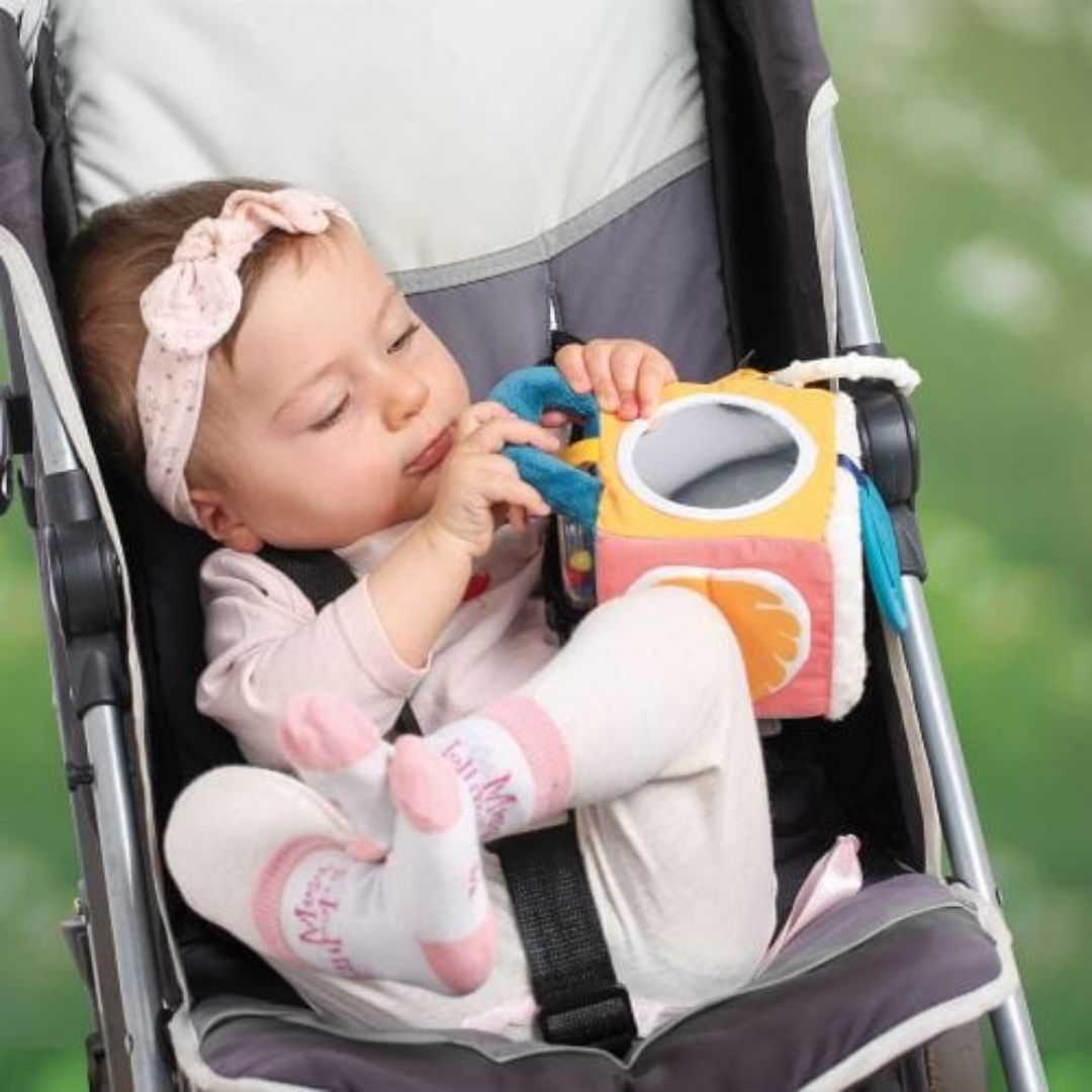 Make exploration an exciting adventure for your baby with the Ludi Leaf Sensory Activity Cube. Not only does this rattle provide auditory fun with tiny beads that make noise, but it also offers opportunities to develop early skills with a flexible ring to hang safely in the stroller, car seat or crib.