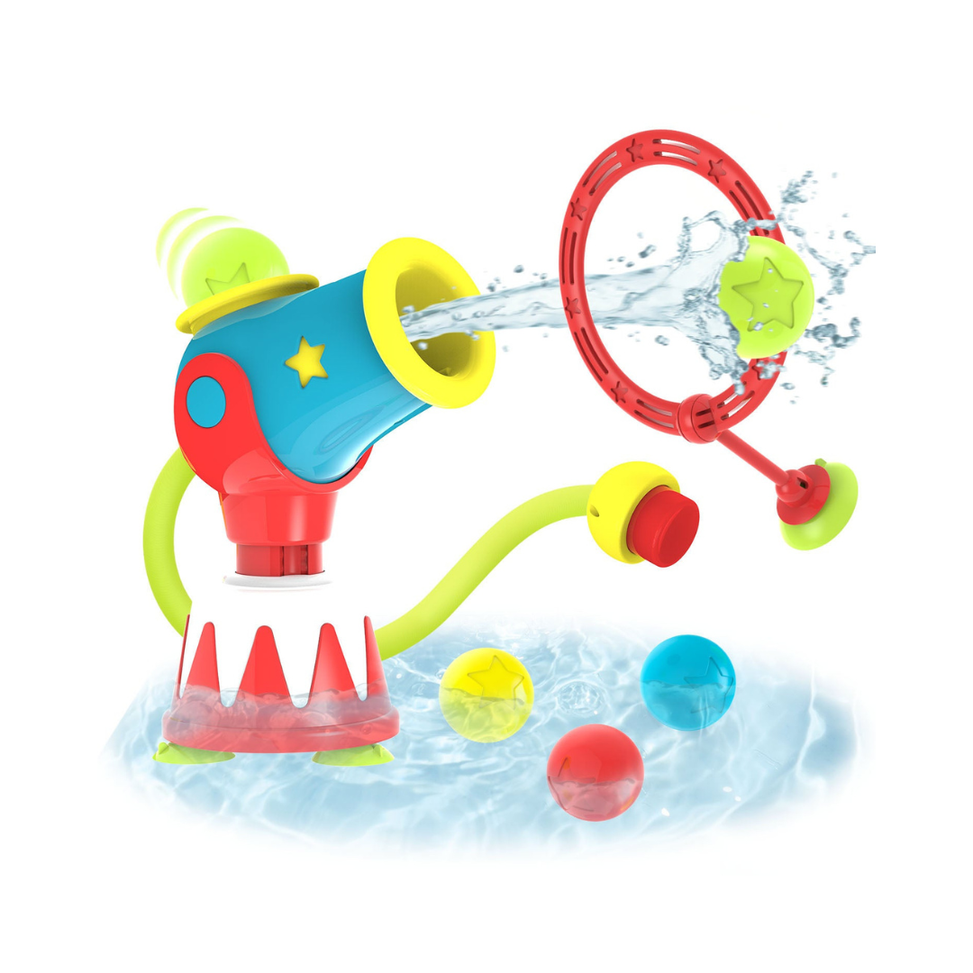 - Fun Water Cannon : Place the cannon at the bottom of the tub and the target ring on the bottom or side. Load one of the five balls into the cannon, aim and shoot using the power of water.