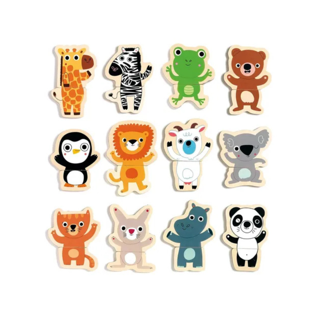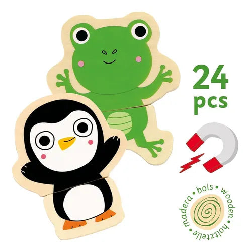 24 piezas magnéticas de madera (12 animales)