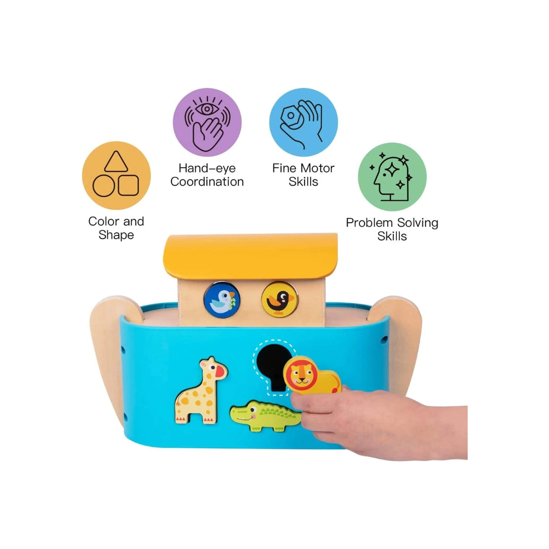 - Shape Sorter Toys: The wooden ark has 3 animal-shaped entrances. This clever design promotes shape recognition, sorting, and fine motor skill development.
