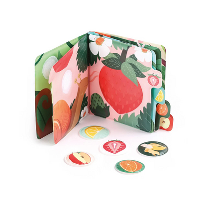 - Asociación sensorial y vocabulario: A través de 12 páginas coloridas, los niños descubren cinco animales y sus frutas favoritas, aprendiendo a asociar imágenes, palabras y aromas.