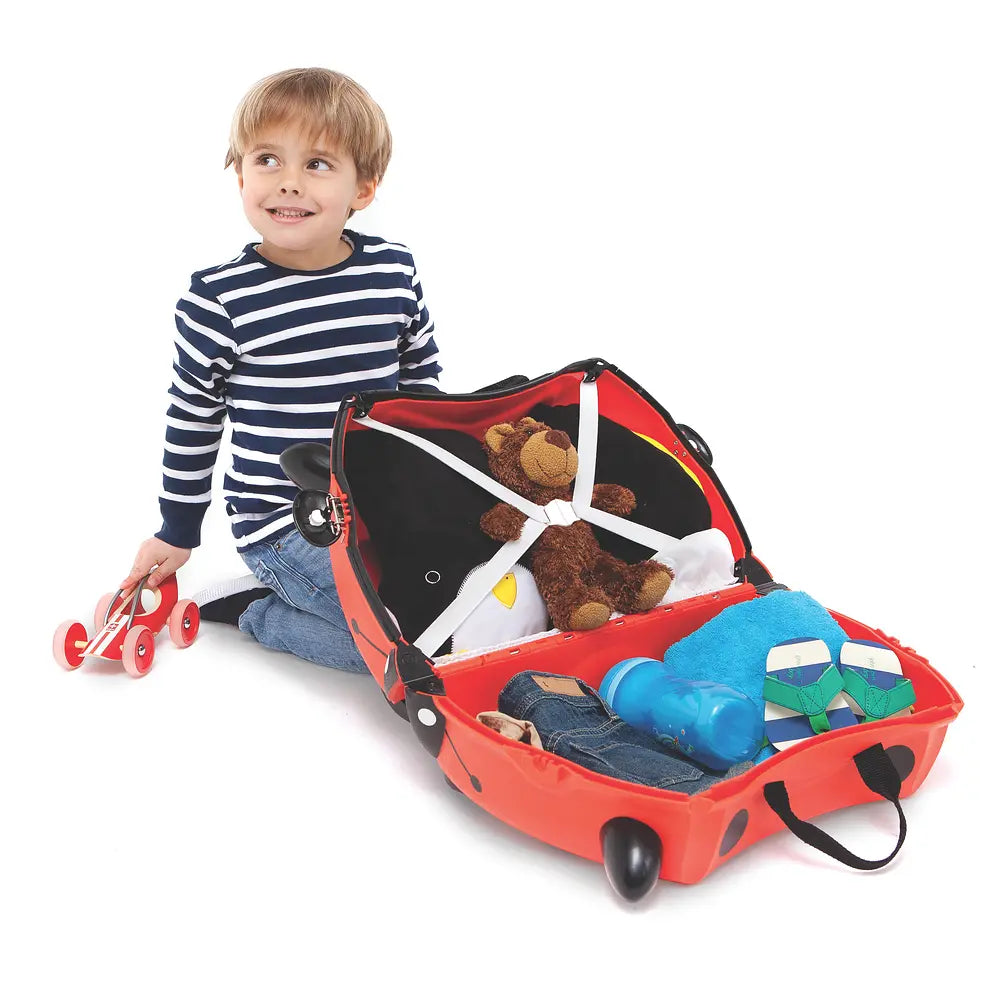 ¡La maleta Trunki es mucho más que una simple maleta! Ideal para niños a partir de los 3 años, esta pequeña pero resistente maleta con ruedas hace que viajar sea mucho más divertido y cómodo para los pequeños viajeros. Con una capacidad de 18 litros, Trunki permite empacar todas sus pertenencias favoritas para llevarlas a bordo como equipaje de mano. Además, es tan ligera que los niños pueden llevarla fácilmente o montarse sobre ella para un descanso mientras son remolcados por sus padres.