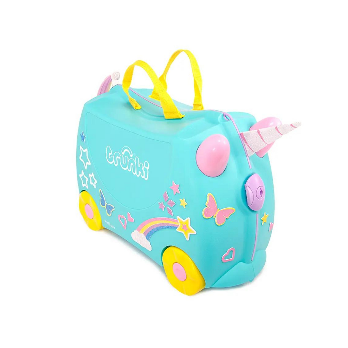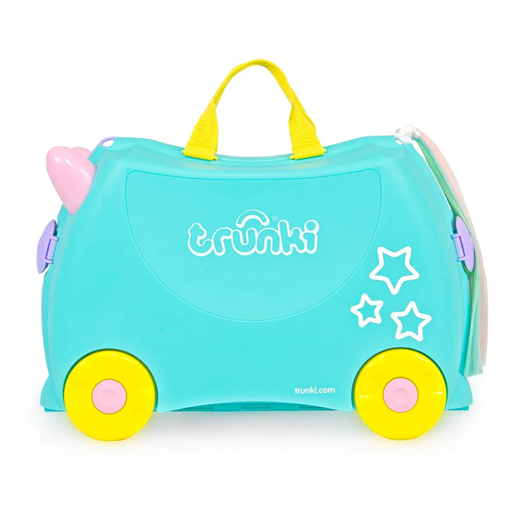 ¡La maleta Trunki es mucho más que una simple maleta! Ideal para niños a partir de los 3 años, esta pequeña pero resistente maleta con ruedas hace que viajar sea mucho más divertido y cómodo para los pequeños viajeros. Con una capacidad de 18 litros, Trunki permite empacar todas sus pertenencias favoritas para llevarlas a bordo como equipaje de mano. Además, es tan ligera que los niños pueden llevarla fácilmente o montarse sobre ella para un descanso mientras son remolcados por sus padres.