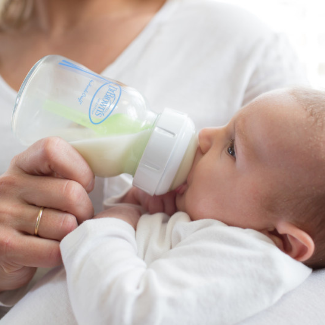Para preparar la fórmula, mezcla en un vaso la leche en polvo con agua, revuelve hasta eliminar burbujas y espuma, y luego vacía la mezcla en la mamadera Dr. Brown’s. ¡Evita agitar la mamadera durante la preparación!