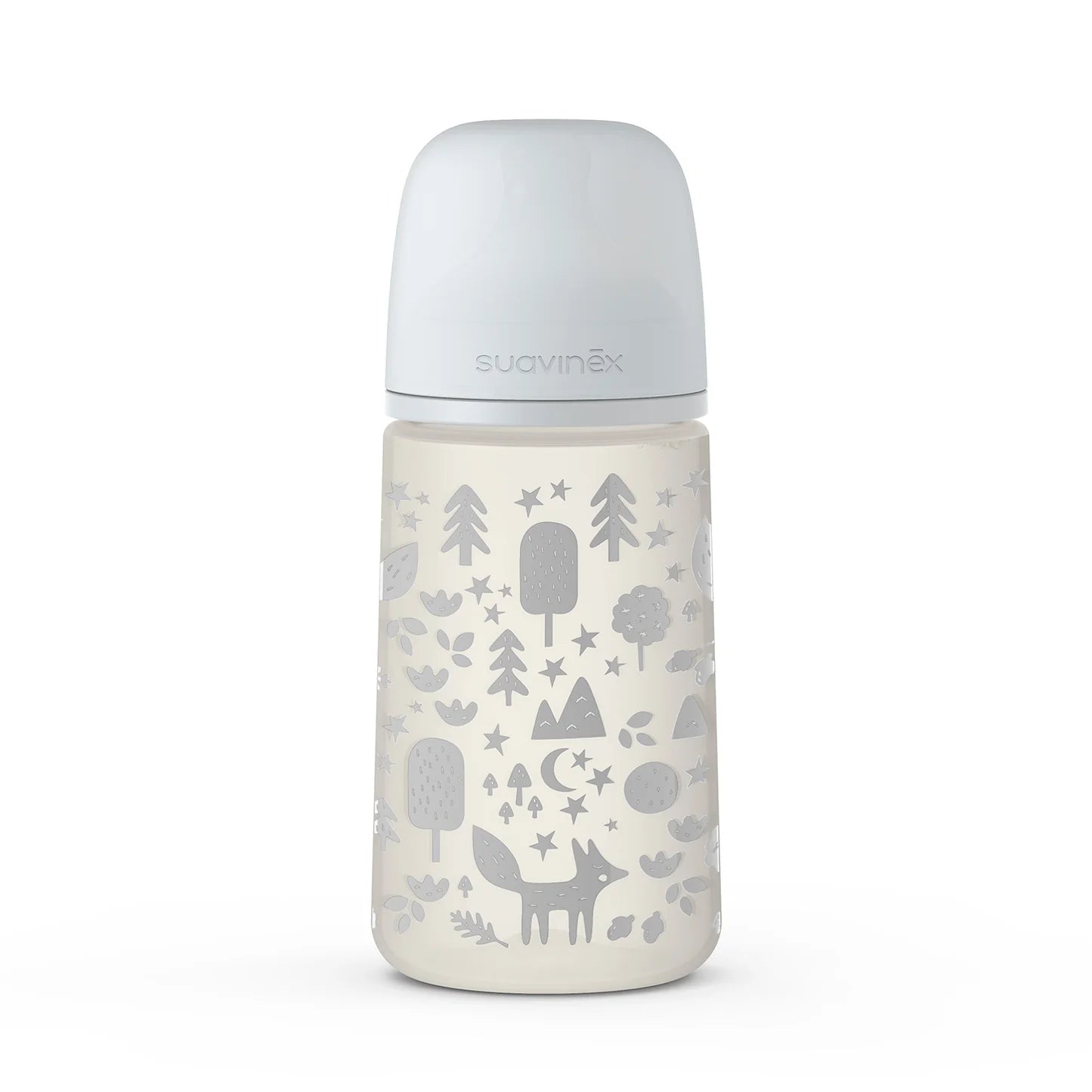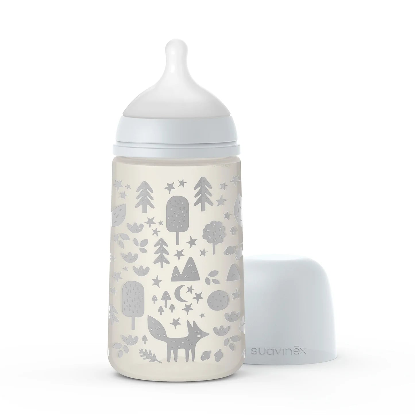 The Prints 270 ml bottle stands out for its straight and ergonomic shape, making it easier for the baby to grip. With a slow-flow nipple, it is ideal from birth for the first milk intakes and later for water.