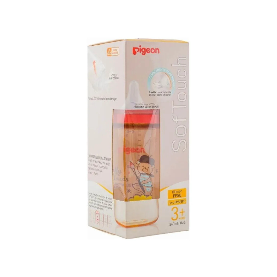 El Biberón Pigeon Softouch PPSU está diseñado para imitar el agarre y la succión del pecho materno, facilitando la transición entre lactancia y mamadera sin estrés para el bebé. Su tetina peristáltica súper suave y flexible reproduce el movimiento natural de la lengua, fomentando una alimentación fluida y cómoda.