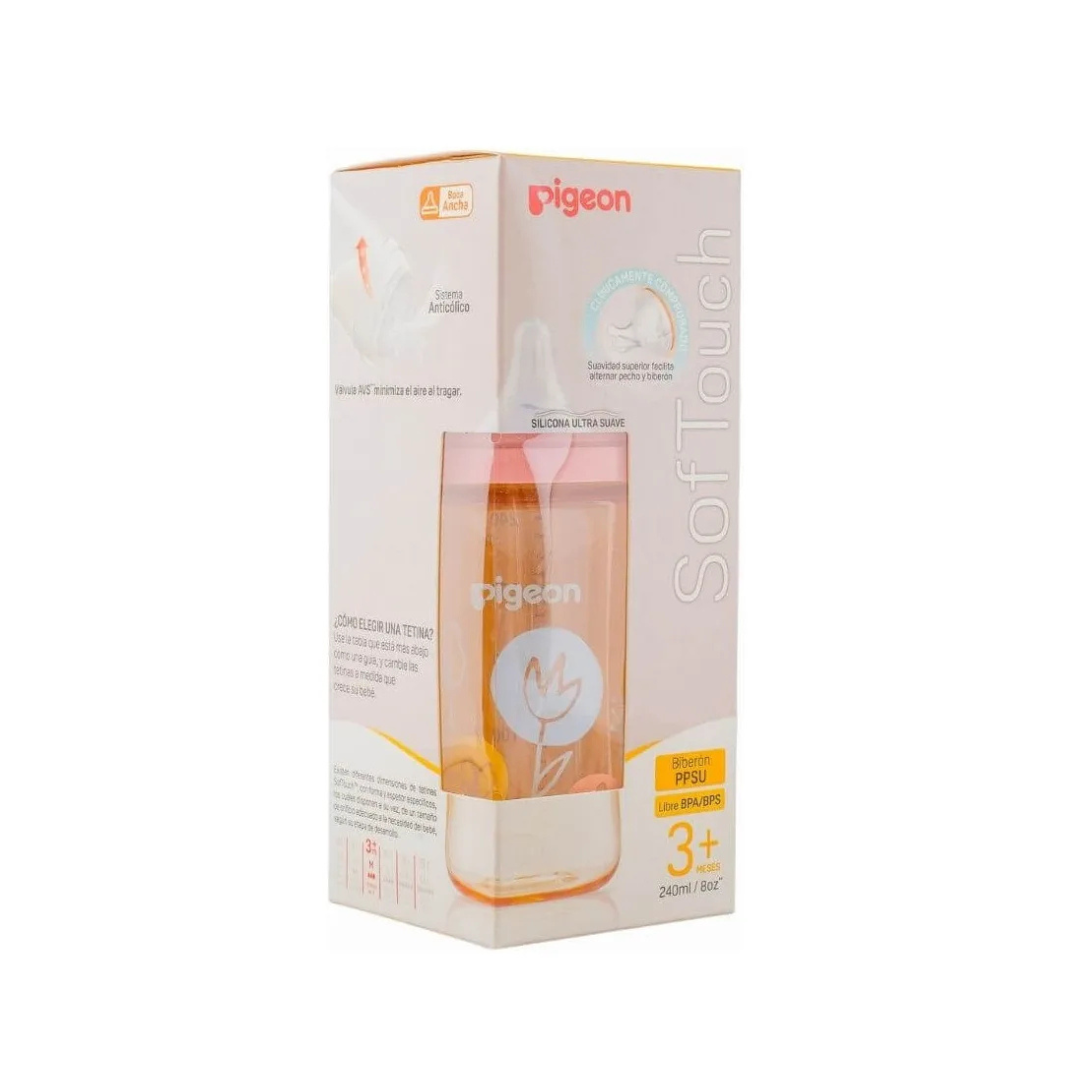 El Biberón Pigeon Softouch PPSU está diseñado para imitar el agarre y la succión del pecho materno, facilitando la transición entre lactancia y mamadera sin estrés para el bebé. Su tetina peristáltica súper suave y flexible reproduce el movimiento natural de la lengua, fomentando una alimentación fluida y cómoda.